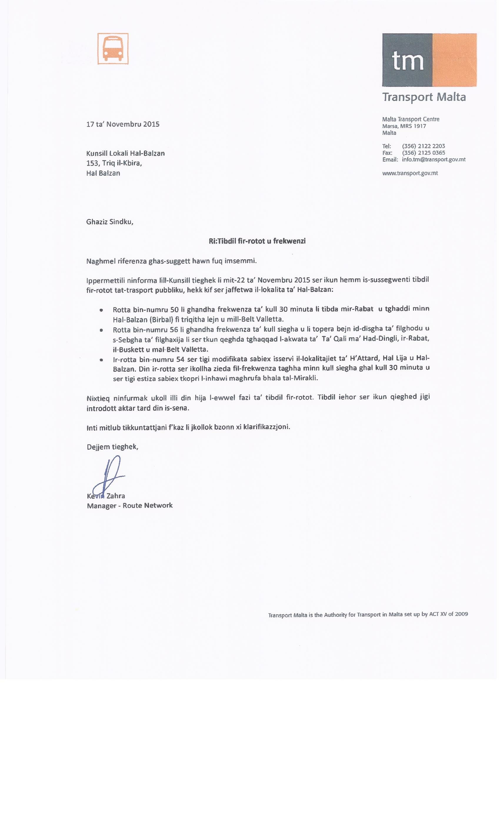 on Tibdil fir-rotot u frekenzi tal-karozzi tal-linja